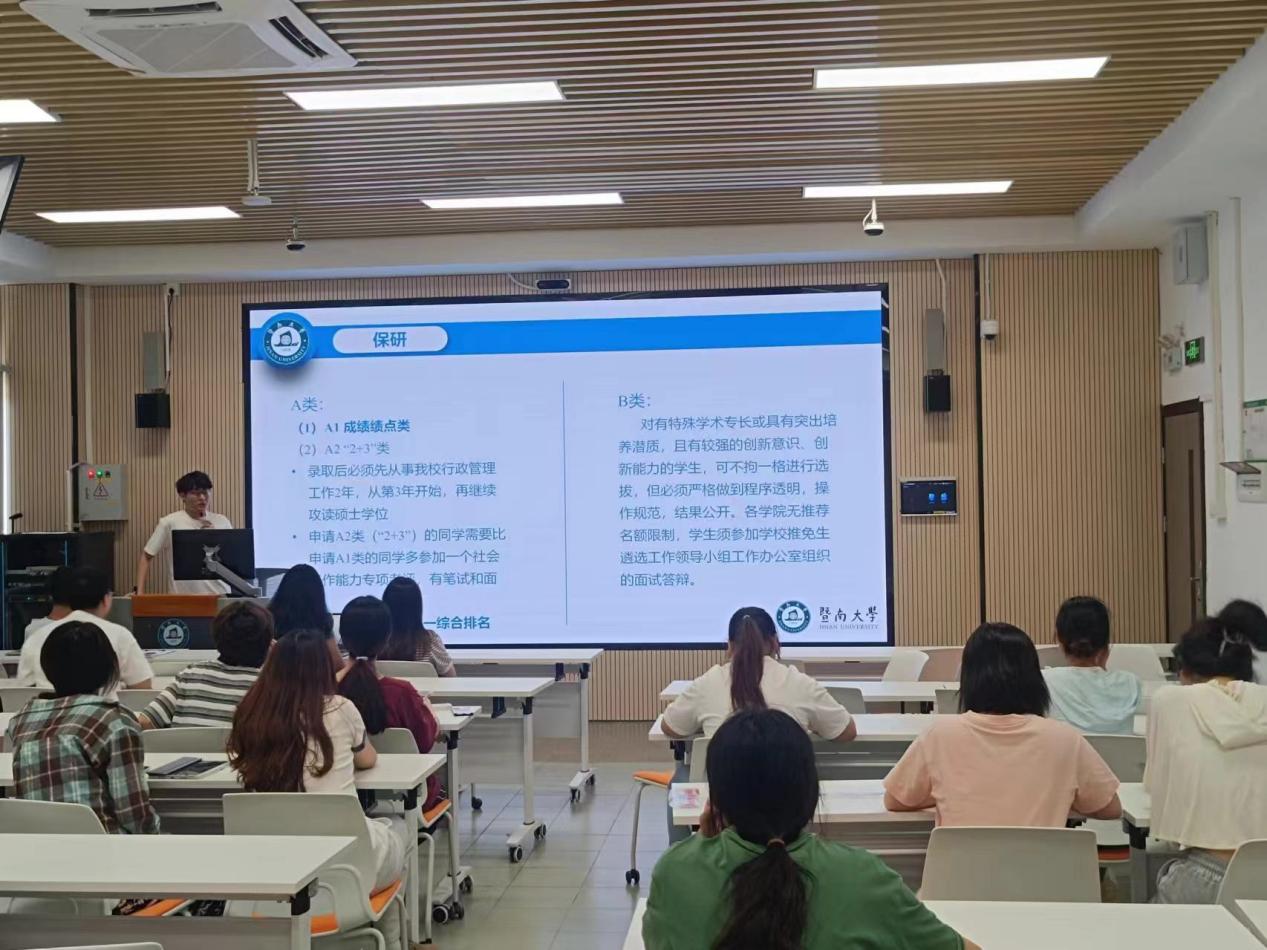 2024年6月27日下午,由深圳旅游学院旅游管理系主办的“研途有你,未来可期”考研保研分享会在综合楼202教室举行。本次活动特邀2020级旅游管理专业的五位优秀学子:王鹏、张源、杨鲁、郑璠和刘卉芸,分享他们在保研和考研中的宝贵经验,本次分享会吸引了众多对升学深造充满热情的同学前来参加。