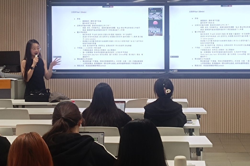 文雨轩结合在联合国全球传播部的工作实践,分享了在多语言、多文化背景下参与国际沟通、项目策划与团队协作的生动经历,阐释了语言能力与国际视野在职业发展中的关键作用。她强调,真正可持续的职业成长离不开内心对事业的热爱,只有找到自己真正感兴趣的方向,才能在职业生涯中保持积极状态,远离内耗。