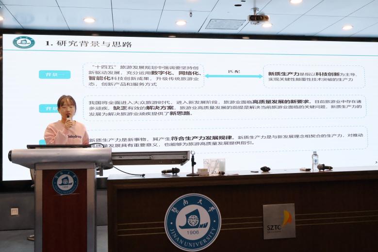 活动自启动以来,受到研究生同学的广泛关注和踊跃报名。经学院遴选,最终10位同学参与学术海报展示,6位同学进行学术口头报告。出席论坛的领导和指导教师包括暨南大学研究生院培养办公室主任柳向东、深圳旅游学院党总支书记宁健、旅游管理系主任刘慧悦副教授、酒店管理系孙晓霞副教授和靳文敏副教授等。